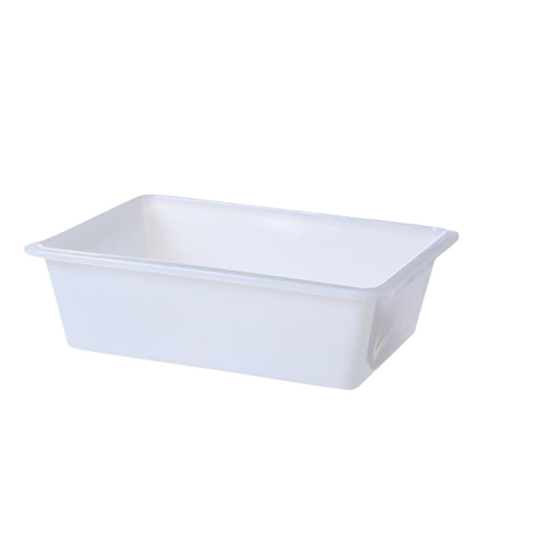 HDPE (Polyethylen med høj densitet): Brugt til holdbare, udendørs/industrielle bakker (f.eks. Logistikforsendelsesbakker, haveværktøjsbakker). Tilvejebringer høj påvirkningsmodstand (selv ved lave temperaturer, -20 ° C), vejrbestandighed (ingen UV -gulning) og slidstyrke -med grov håndtering og udendørs eksponering, der er egnet til medium -load -scenarier (10-25 kg pr. Bakke).